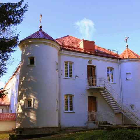 Вместе со своим соотечественником из Голландии инженером-фортификатором Ван Доденом в 1612 году он возвел сооружение, которое как нельзя лучше иллюстрирует известная пословица: мой дом – моя крепость. Почти аутентично сохранившийся дом-крепость, некогда окруженный валами и водяными рвами, органично соединяет в себе готику и ренессанс. Сурового вида прямоугольное (15 на 34 метра) двухэтажное здание с четырьмя цилиндрическими башнями по углам и квадратной трехэтажной башней по центру, напоминающей средневековые башни-донжоны, – таким предстает этот памятник. В ХIX веке перед центральной башней появилась широкая терраса на двух пилонах, соединенных аркой. Толстые, до полутора метров, стены, лишенные декора фасады, узкие окна-бойницы в угловых башнях – красноречивое и, быть может, даже чересчур утрированное свидетельство крепостного характера этого сумрачного сооружения.